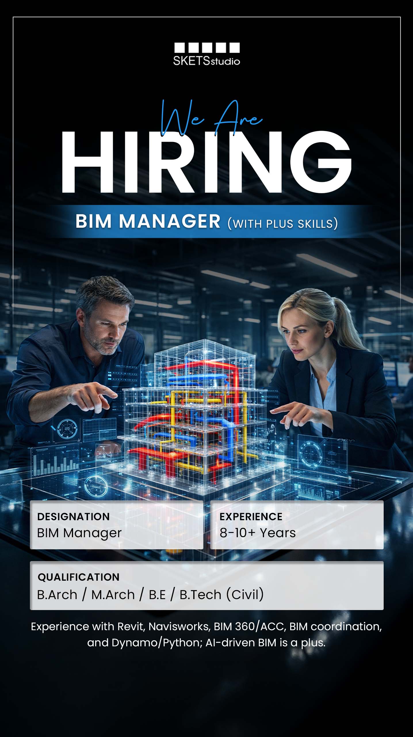 We are looking for a BIM Manager (with Plus Skills), BIM Lead, or Senior BIM Specialist.