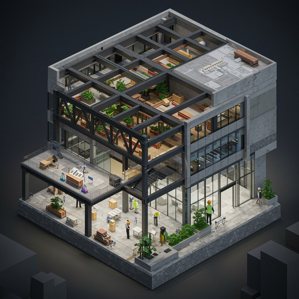 We design and analyze robust structural systems in both steel and concrete, delivering safe, durable, and cost-effective solutions across a broad range of building types. Our work spans everything from steel frameworks that offer strength, flexibility, and rapid construction to concrete structures that provide long-term stability and load-bearing capacity, ideal for high-rise buildings, factories, warehouses, and commercial developments. We approach each project with a focus on practical performance, carefully balancing material use, structural loads, and construction methods to meet project requirements. Our designs are efficient, versatile, and compliant with regulations, tailored to client goals and real-world performance demands.